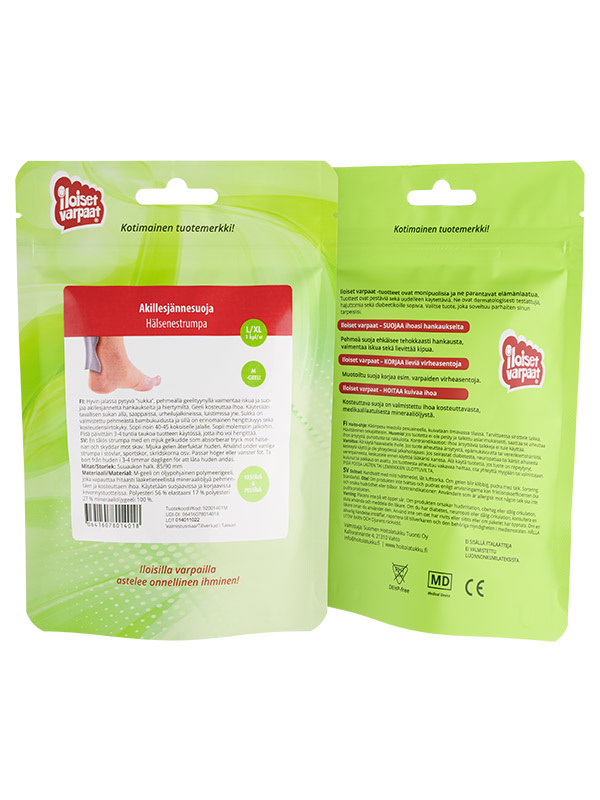 Iloiset varpaat -geelituotteet suojaavat jalkoja tehokkaasti hankaumilta, paineelta ja kivulta. Dermatologisesti testattu ja hajuton geelimateriaali sopii herkällekin iholle – myös diabeetikoille. Tuotteet on suunniteltu jokapäiväiseen käyttöön, erityisesti aktiiviselle liikkujalle, joka haluaa huolehtia jalkojensa hyvinvoinnista.