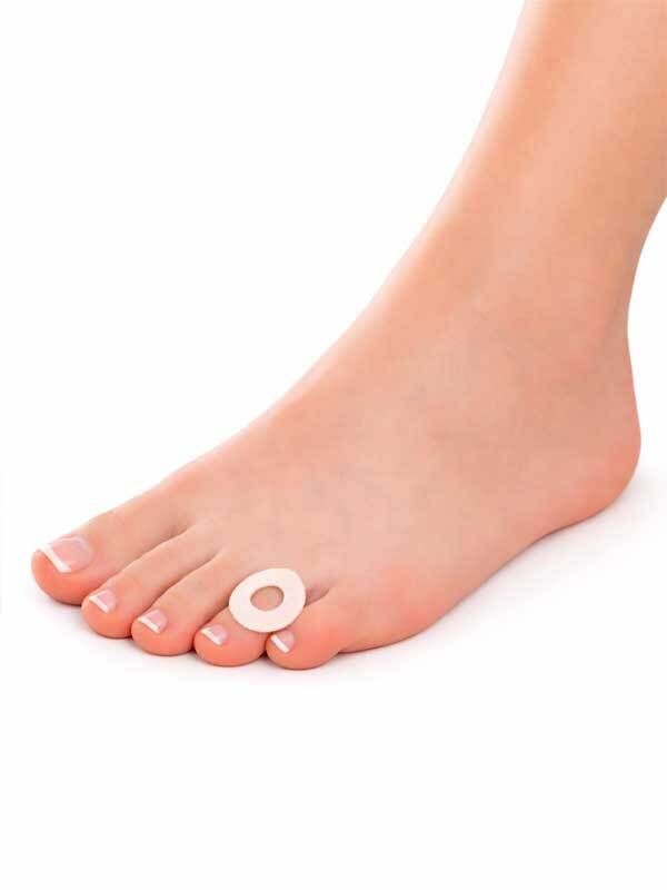 Kiinnitä rengas puhtaille, kuiville jaloille niin, että aristava kohta jää renkaan keskelle. Paina huolellisesti paikoilleen. Älä käytä voidetta ennen kiinnitystä, jotta rengas pysyy hyvin. Voit kiinnittää renkaan myös suoraan kenkään.