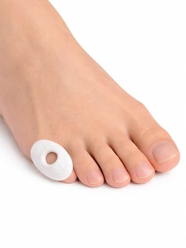 Kiinnitä rengas puhtaille, kuiville jaloille niin, että aristava kohta jää renkaan keskelle. Paina huolellisesti paikoilleen. Älä käytä voidetta ennen kiinnitystä, jotta rengas pysyy hyvin. Voit kiinnittää renkaan myös suoraan kenkään.