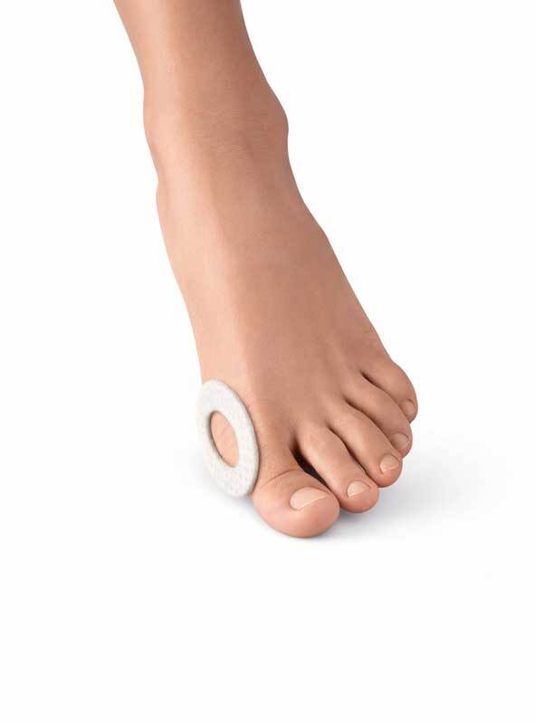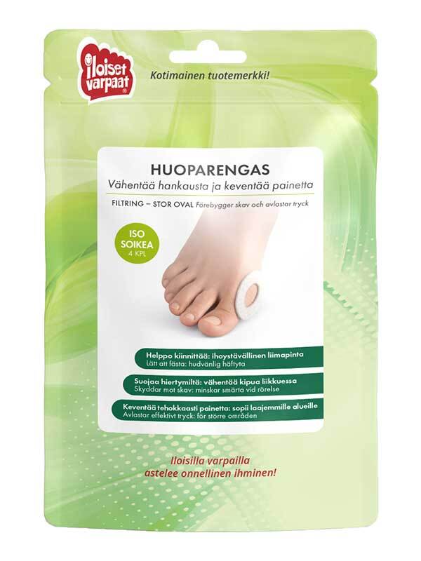 Kiinnitä rengas puhtaille, kuiville jaloille niin, että aristava kohta jää renkaan keskelle. Paina huolellisesti paikoilleen. Älä käytä voidetta ennen kiinnitystä, jotta rengas pysyy hyvin. Voit kiinnittää renkaan myös suoraan kenkään.