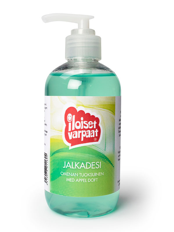 Iloiset Varpaat -jalkadesi on omenantuoksuinen, raikkaasti desinfioiva jalkahuuhde, joka pitää jalat puhtaina ja raikkaina ilman ihoa kuivattavaa vaikutusta. Tuotteen sisältämä aloe vera kosteuttaa ja hoitaa ihoa, joten se sopii erinomaisesti myös herkälle tai kuivalle iholle.