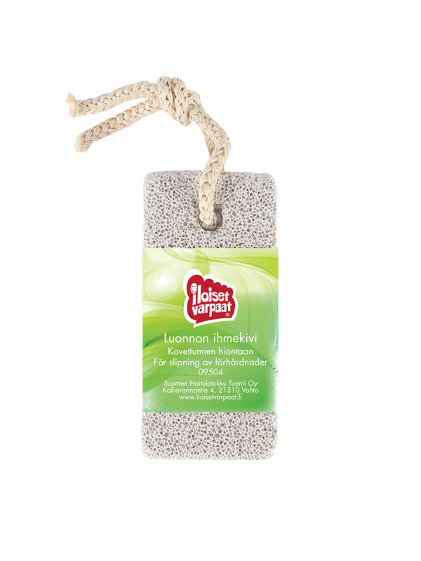 Hohkakivestä valmistettu ihmekivi – poistaa hellävaraisesti ja tehokkaasti jalkapohjien kovettumia. Käytetään kostutettuna – pyörivin, kevyin liikkein – jolloin kuollut ihosolukko irtoaa vaivattomasti. Sopii säännölliseen jalkojen hoitoon. Huuhtele käytön jälkeen sekä iho että ihmekivi, ja anna kiven kuivua ilmavasti. Ei suositella käytettäväksi kuivalle tai vaurioituneelle iholle.