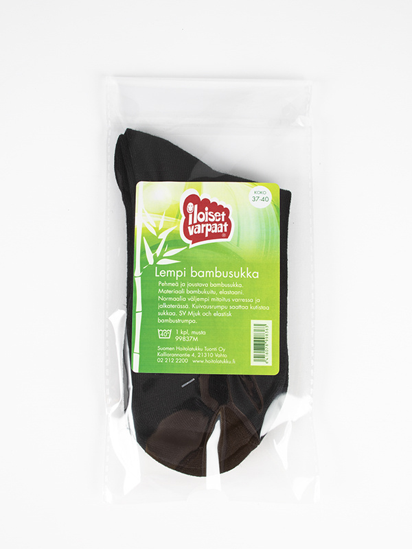 Mukavat, hengittävät ja pehmeät bambusukat pitävät jalat raikkaana koko päivän. Antibakteerinen materiaali ehkäisee hajua ja kosteutta. Väljä mitoitus – sopii monenlaiseen jalkaan.