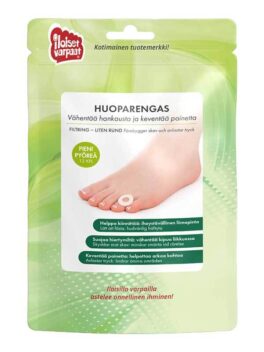 Iloiset Varpaat – Litteä varpaanerottaja – huomaamaton suoja ahtaisiin varvasväleihin Litteä ja huomaamaton geelierottaja on suunniteltu erityisesti ahtaisiin varvasväleihin, kun varpaat taipuvat tai painuvat toistensa päälle. Se vähentää tehokkaasti hankausta, painetta ja siihen liittyvää kipua – esimerkiksi silloin, kun kynnen reuna on kipeä tai varvas hankaa toista vasten. Pehmeä ja ihoystävällinen geeli suojaa ihoa ja hoitaa sitä samalla vapauttaen hitaasti kosteuttavaa lääketieteellistä mineraaliöljyä. Erottaja on erittäin ohut, joten se mahtuu hyvin myös ahtaisiin kenkiin. Sopii erityisesti 4. ja 5. varpaan erottamiseen. Aseta varpaanerottaja varpaiden väliin ja pue sukka päälle. Materiaali: 100 % mineraaliöljygeeli (M-geeli), joka vapauttaa hitaasti lääketieteellistä mineraaliöljyä ja pehmentää ihoa. Hoito-ohje: Pese käsin miedolla pesuaineella, kuivaa ilmavasti. Pakkauksessa 2 kpl Iloiset varpaat -geelituotteet – monipuolinen apu parempaan jalkojen hyvinvointiin! Iloiset varpaat -geelituotteet suojaavat jalkoja tehokkaasti hankaumilta, paineelta ja kivulta. Dermatologisesti testattu ja hajuton geelimateriaali sopii herkällekin iholle – myös diabeetikoille. Tuotteet on suunniteltu jokapäiväiseen käyttöön, erityisesti aktiiviselle liikkujalle, joka haluaa huolehtia jalkojensa hyvinvoinnista. Geelituotteen hyödyt: 🟢 Suojaa ihoa hankaukselta ja vähentää painetta 🟢 Lievittää kipua ja pehmentää kuivaa ihoa 🟢 Auttaa korjaamaan lieviä virheasentoja 🟢 Istuu hyvin ja hengittää ilmareikien ansiosta Huom! Iloiset varpaat -geelituotteet ovat lääkinnällisiä laitteita. Niiden turvallisuus ja tehokkuus on testattu – ne ovat paljon enemmän kuin tavalliset kevennystuotteet. Hygienia- ja terveystuotteilla ei ole palautusoikeutta, mikäli sinetöity pakkaus on avattu. Epävarmoissa tilanteissa suosittelemme kysymään neuvoa jalkahoitajalta ennen ostopäätöstä.
