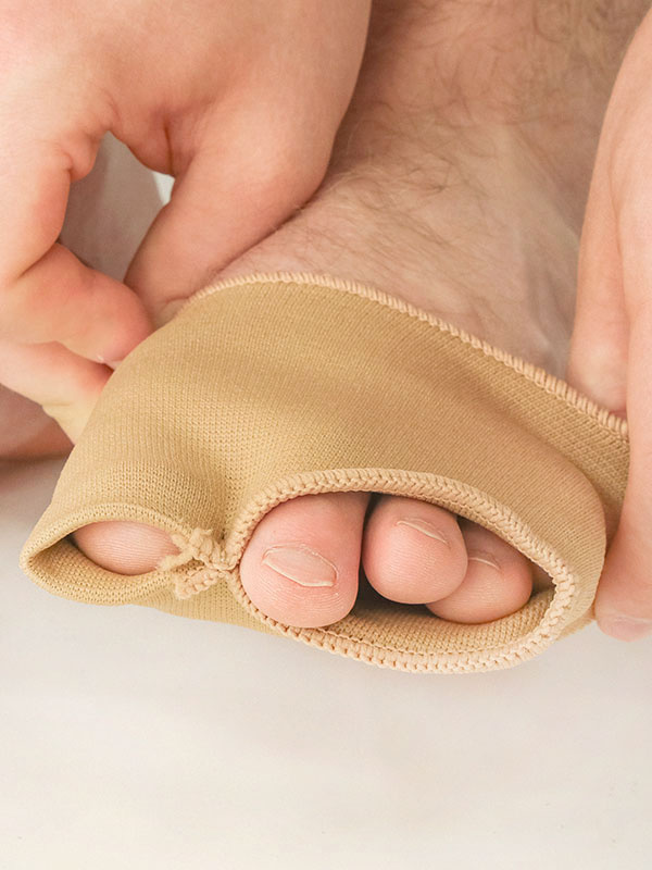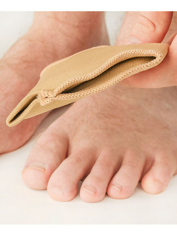Pehmustettu geelityyny päkiän alueelle lievittämään painetta ja kipua. Vasemman jalan malli, sopii noin 40-44 kokoiseen jalkaan.
