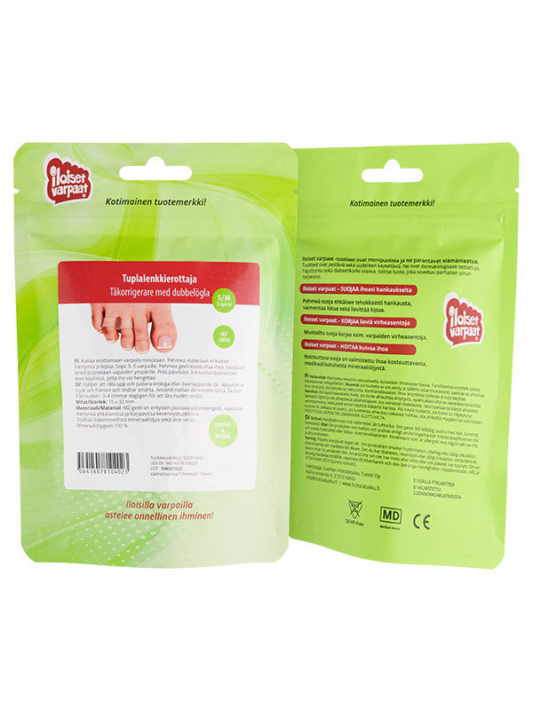 Huom! Iloiset varpaat -geelituotteet ovat lääkinnällisiä laitteita. Niiden turvallisuus ja tehokkuus on testattu – ne ovat paljon enemmän kuin tavalliset kevennystuotteet.
