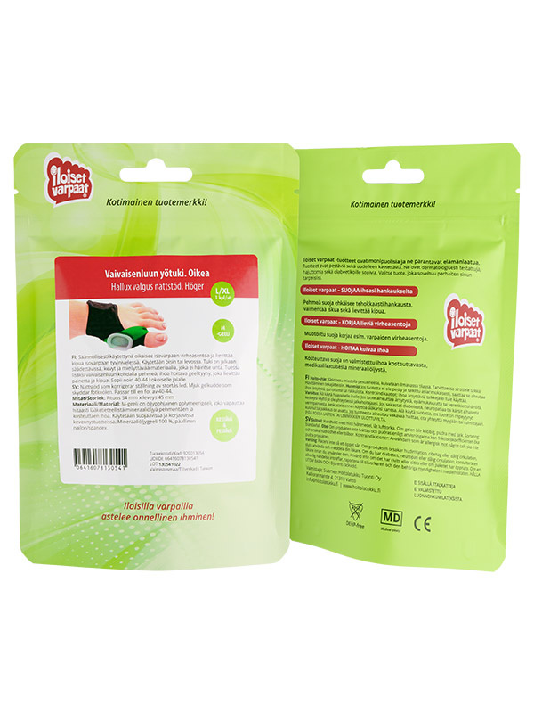 Iloiset Varpaat -geelituotteet ovat lääkinnällisiä laitteita (Medical Device, MD). Niiden materiaalit on testattu tarkasti ja ne täyttävät korkeimmat turvallisuus- ja suorituskykyvaatimukset. Hajuttomat ja dermatologisesti testatut tuotteet ovat turvallisia myös diabeetikoille.