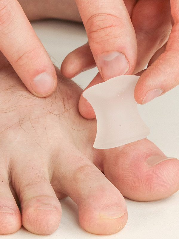 Aseta varpaanerottaja varpaiden väliin ja pue sukka päälle.