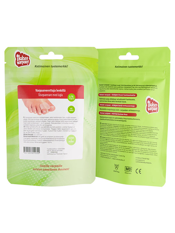 Iloiset varpaat -geelituotteet ovat paljon enemmän kuin tavalliset kevennystuotteet. Ne ovat lääkinnällisiä laitteita, joiden turvallisuus ja teho on tutkittu perusteellisesti: materiaalien puhtaus, biologinen yhteensopivuus ja suorituskyky on analysoitu ennen tuotantoa. Tuotteet ovat dermatologisesti testattuja, hajuttomia ja soveltuvat myös diabeetikoille.