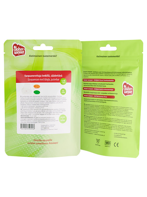 Huom! Iloiset varpaat -geelituotteet ovat lääkinnällisiä laitteita. Niiden turvallisuus ja tehokkuus on testattu – ne ovat paljon enemmän kuin tavalliset kevennystuotteet.