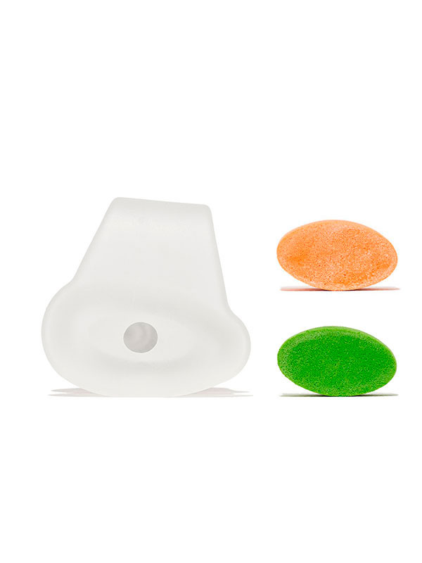 Pakkauksessa: 1 kpl geelierottaja 1 kpl oranssi lisäkappale (pehmeä ja joustava) 1 kpl vihreä lisäkappale (kiinteä ja tukeva)