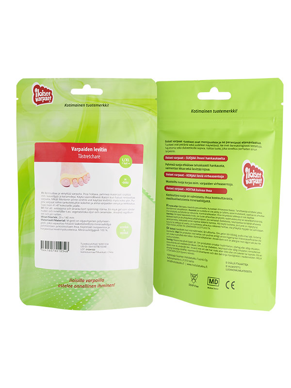 Iloiset varpaat -geelituotteet ovat lääkinnällisiä laitteita, joiden turvallisuus ja tehokkuus on tutkittu huolellisesti. Ne on valmistettu korkealaatuisista, lääketieteellisistä materiaaleista ja ne sopivat myös diabeetikoille. Tuotteet ovat hajuttomia, dermatologisesti testattuja sekä pestäviä ja uudelleenkäytettäviä.