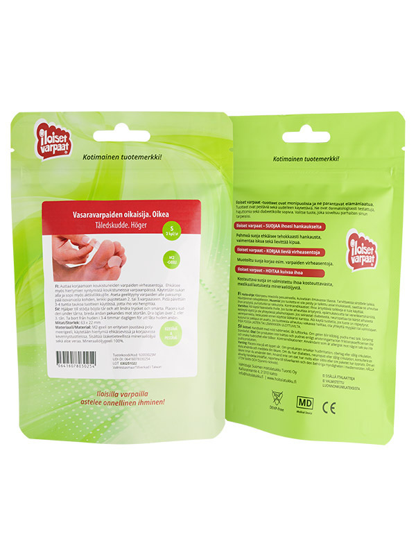 Pakkaus sisältää 2 kpl oikaisijoita oikean jalan varpaille.