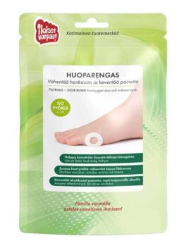 Kiinnitä rengas puhtaille, kuiville jaloille niin, että aristava kohta jää renkaan keskelle. Paina huolellisesti paikoilleen. Älä käytä voidetta ennen kiinnitystä, jotta rengas pysyy hyvin. Voit kiinnittää renkaan myös suoraan kenkään.